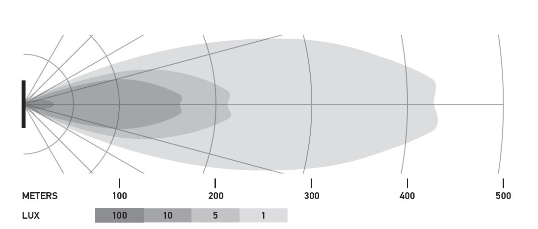 Maksymalny zasięg światła SPOT: Specjalnie zaprojektowana optyka zapewnia skoncentrowaną wiązkę światła o imponującym zasięgu, idealną do oświetlania odległych obiektów i tras.